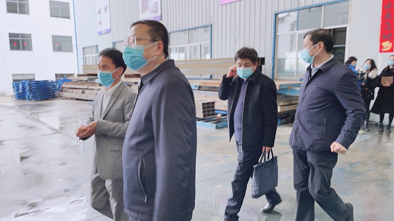 耀星机械董事长向领导介绍介绍项目概况,随后,大家一同参观车间的生产工艺以及半成品